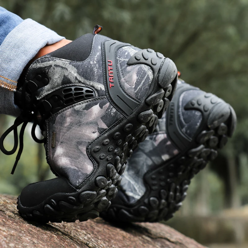 Best Product Safety Shoes Waterproof Men's High Top Outdoor Hiking Shoes Camouflage Leaves Climbing Mountain Cam